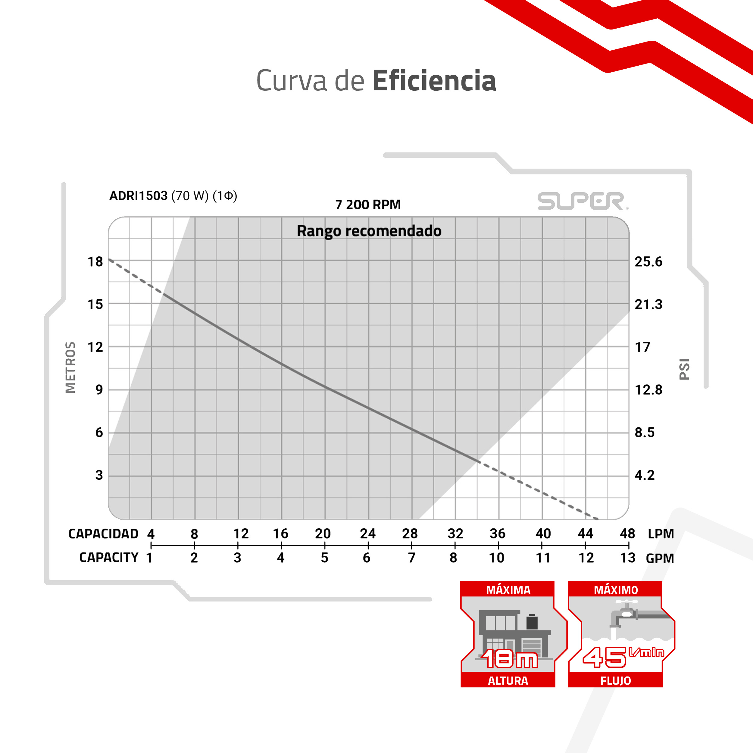- Presión Máxima: 18 m